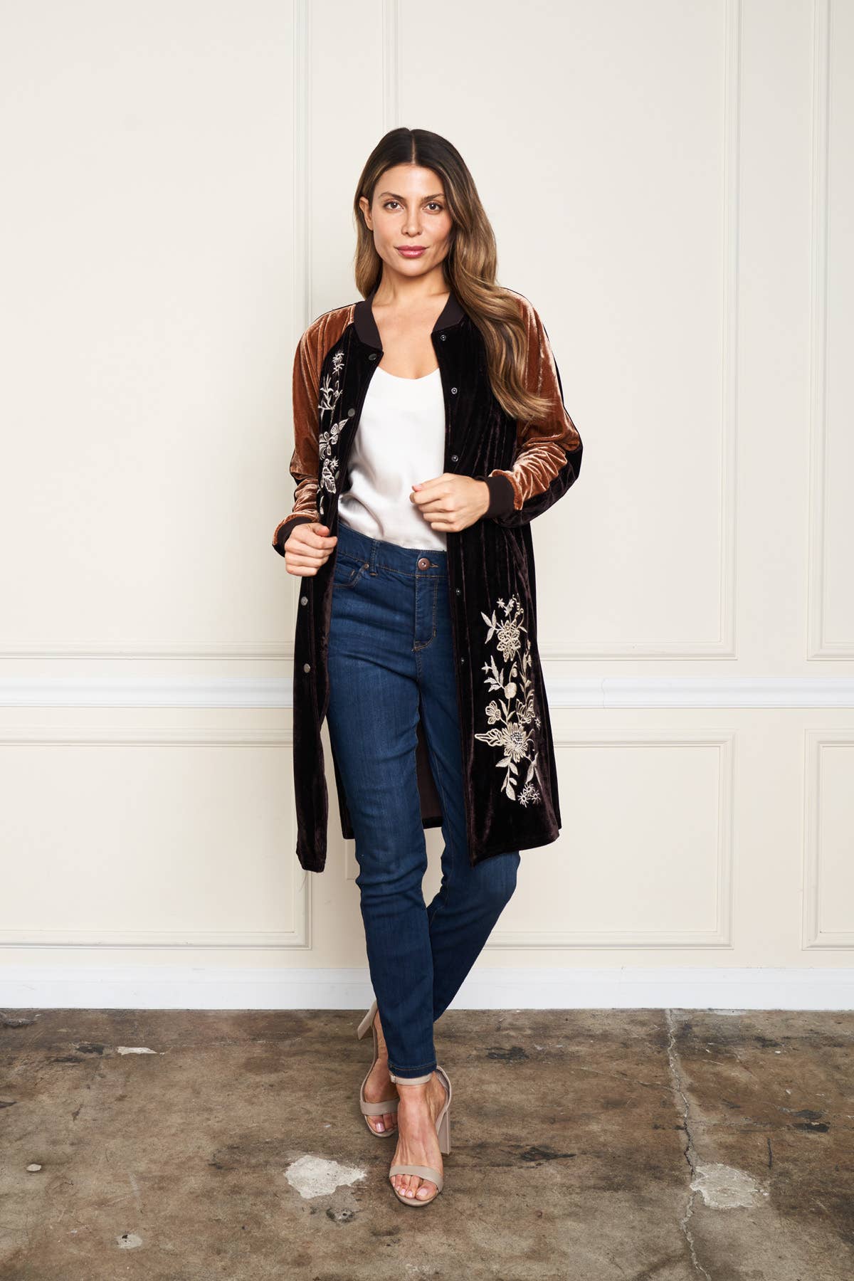 Discover the stylish world of Paparazzi By Biz with our 5677-MAD Velvet Embroidered Long Baseball Duster. This contemporary piece showcases our brand's commitment to transcending cultures and defying expectations. The duster is crafted from a comfortable blend of 95% Polyester and 5% Spandex, ensuring a flattering silhouette that's perfect for everyday wear. It features distinctive and fresh embroidery in a western style, adding a unique touch to the colorblock design. Its long sleeves make it a versatile addition to any wardrobe. Comes in a pre-pack of 6 pcs: S:2-M:2-L:1-XL:1. Machine washable for easy care.