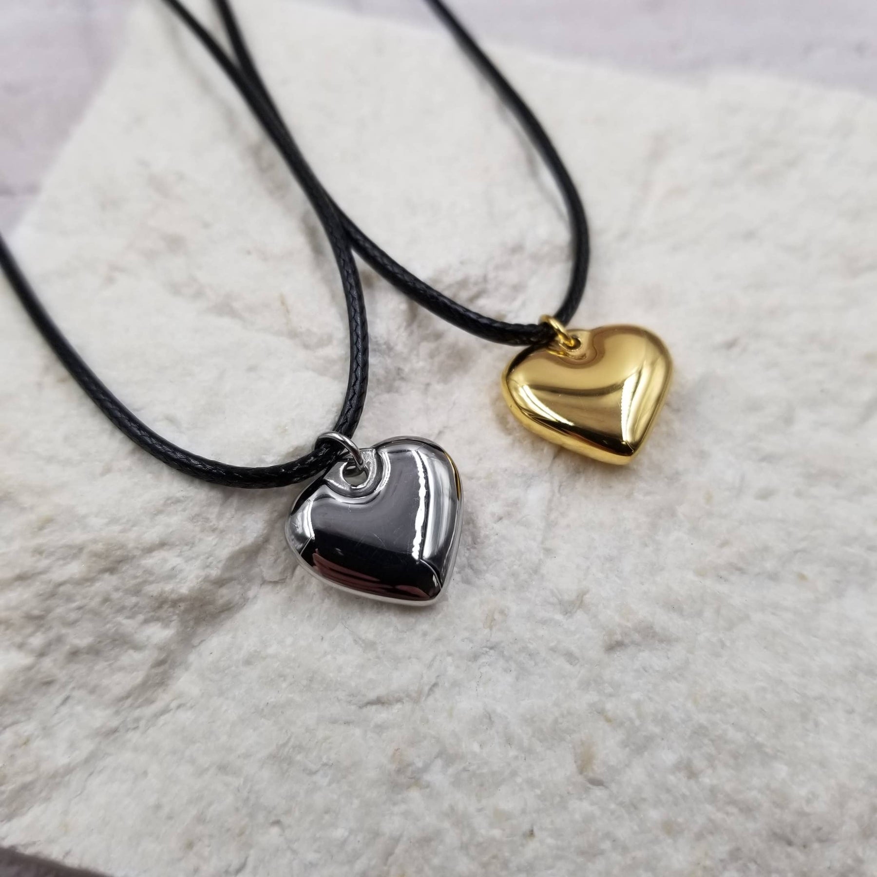 Heart Necklace - Gift of Love Chain length: 15.5" +1.95 " Pendant : 0.629" Weight :0.02 lb . Material:Stainless Steel Color: Gold.Silver . Function: Jewelry&Accessories . Application: Women/Girls . Occassion:Party/Office/Casual . Package Includes: 1Pair/Opp Bag .
