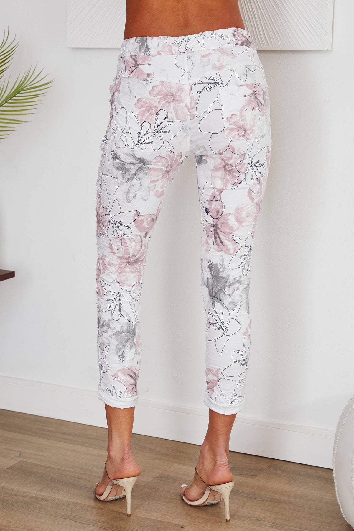 FLORAL PRINT CRINKLE JOGGER WHT): S