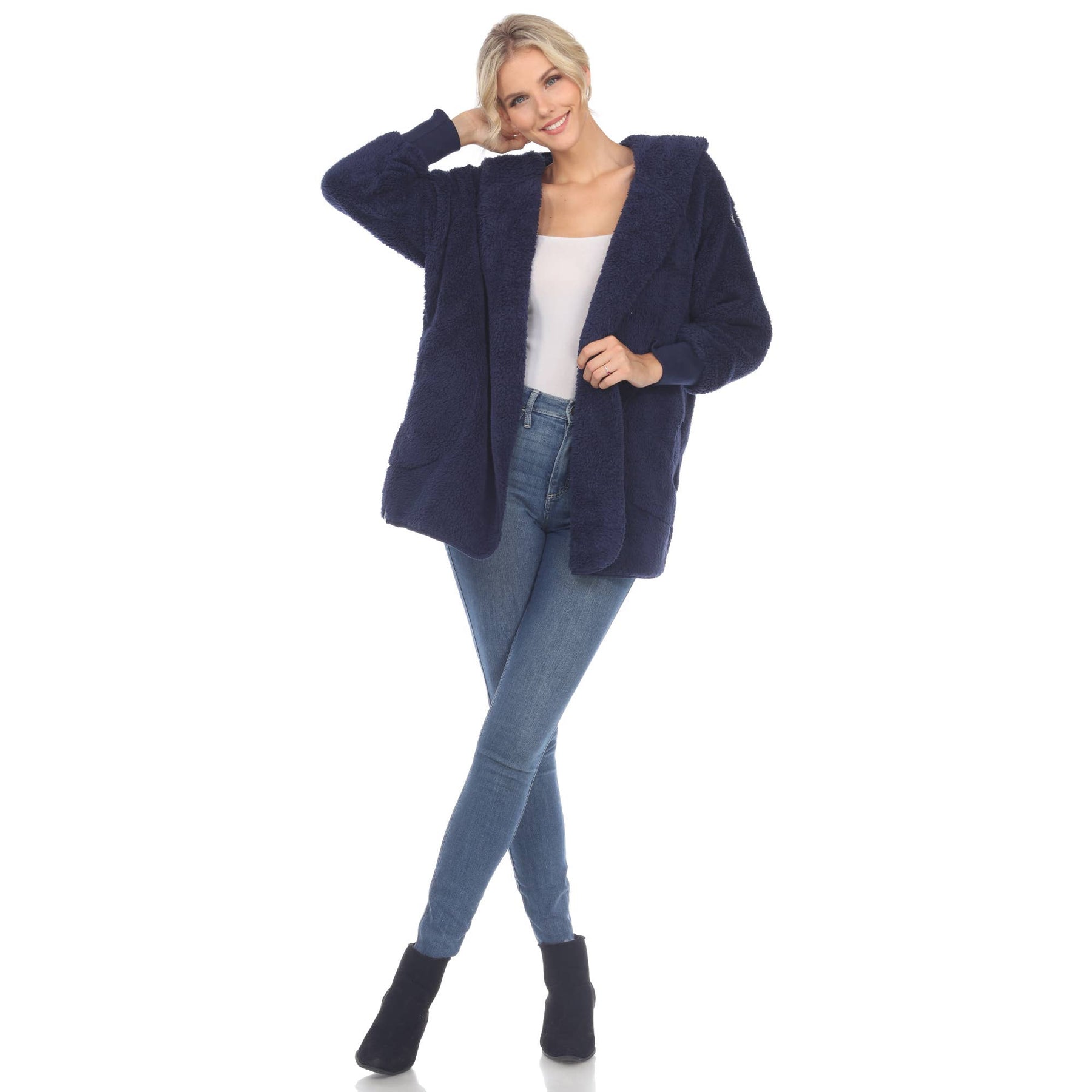 This plush shawl-collar cardigan sherpa from White Mark is extremely comfortable it can cause serious coziness in style. Features an open-front design and relaxed fit to make layering easy, two side slip pockets to carry your small essentials and a hood for that extra warmth. Pairs well with leggings or jeans.
